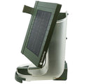 The FeatherSnap is going to be a bird feeder that you can store two different types of seed in the unit. You have a solar panel that will keep the unit charged with an antenna on top. The bracket on the back allows the camera to hang up with two holes for screws or nails. On the bottom of the unit, there are two rails that slide out for the birds to sit on. The camera itself pops in/out of the feeder to get to the SD card or checking the unit. The battery on the camera can be recharged with a cable provided