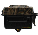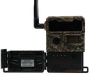 The Yellowstone.ai Y2 camera appears very durable and is the only company to offer a lifetime warranty. There's a small door on the bottom half of the unit with a simple latch. A cable lock can be threaded through the front door preventing theft as well as access to the controls. Another option allows access to the controls while still securing the unit. There are LED lights for camera connection and the SD card is easily accessible. The eject button for the battery tray is inside the door and the battery tray comes out the bottom.